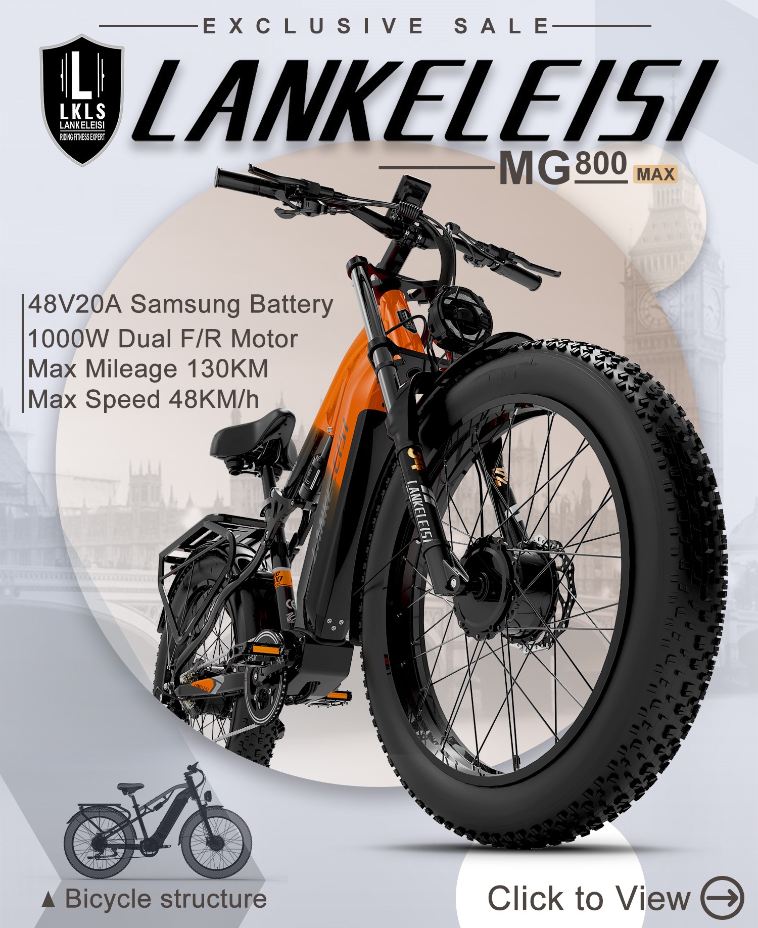 輪胎: 26 x 4.0 英吋寬胎,具備防滑、減震功能